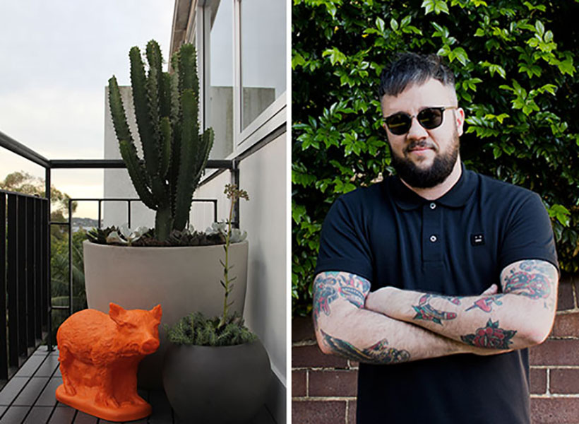 Last year Pepo had the pleasure of meeting Dominic Kuneman a budding Interior Designer who engaged us to create a garden inspired by the retro feel and bold garden aesthetics of the Parker Hotel, Chateaux Marmont, The Beverley Hills Hotel and the Royal Hawaiian. We recently installed a balcony garden to compliment his design of an apartment in Bellevue Hill with the brief of ‘American Psycho’! A sleek monotone colour scheme paired with the minimalist, spiky and unusual foliage of the cactus and succulents was chosen. As a nod to ‘American Psycho’, we included a bright orange boar designed by the German artist Ottmar Hörl from our friends at Garden Life.